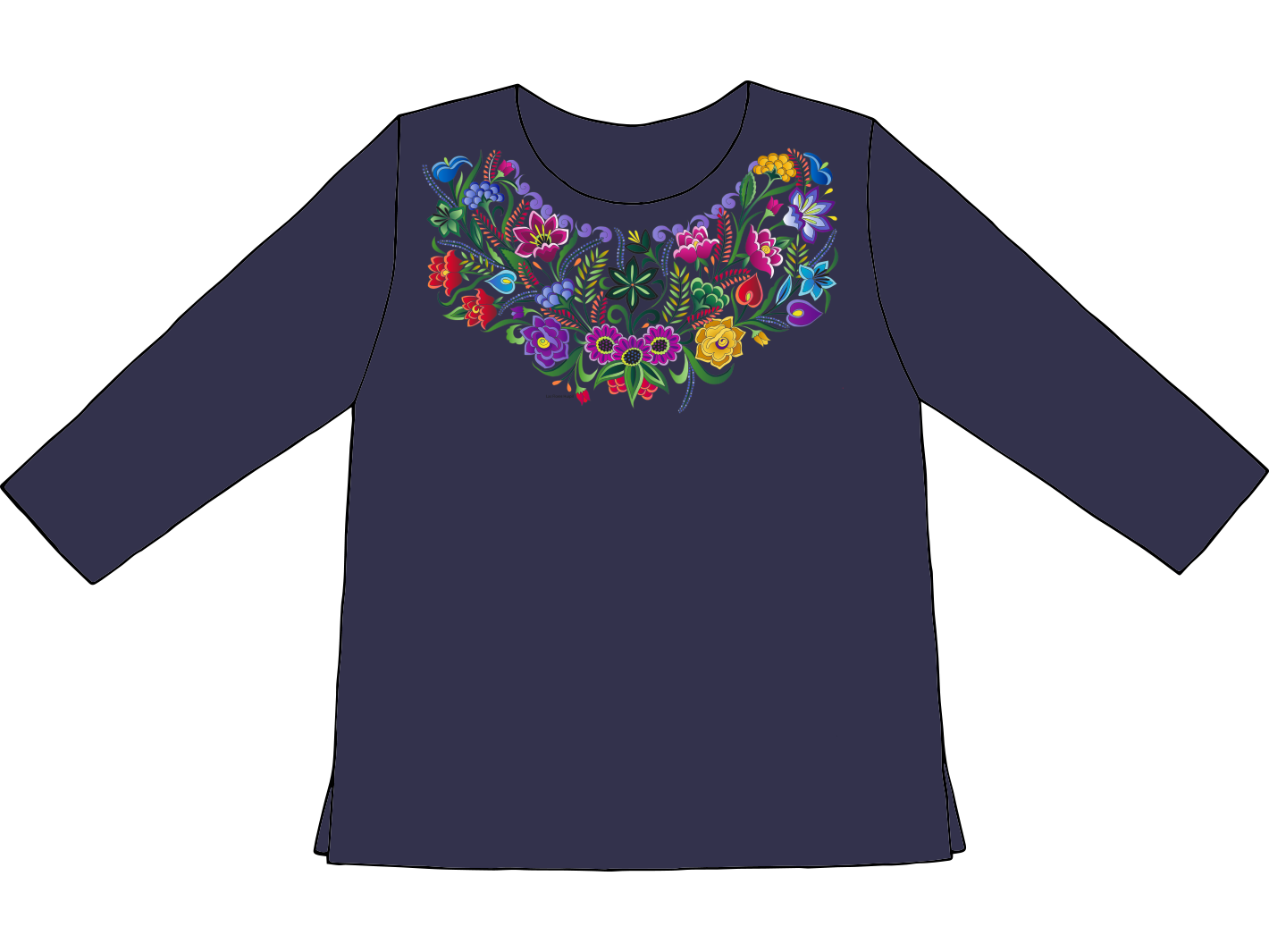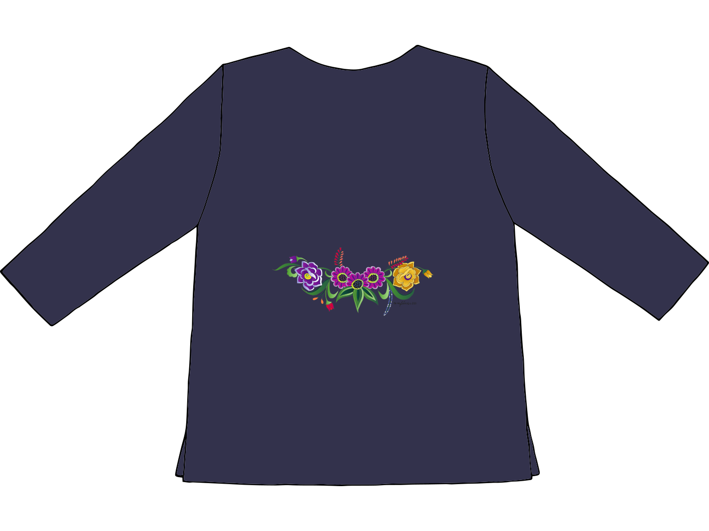 Ladies 3/4 Sleeve Top- (3/4s) Our own flattering missy cut, hemmed below the hip with a scoop neckline, side vents and bracelet length sleeves.  Made in the USA of soft 100% garment dyed cotton. Medium approximately 28" long and 21" wide at the under arm.